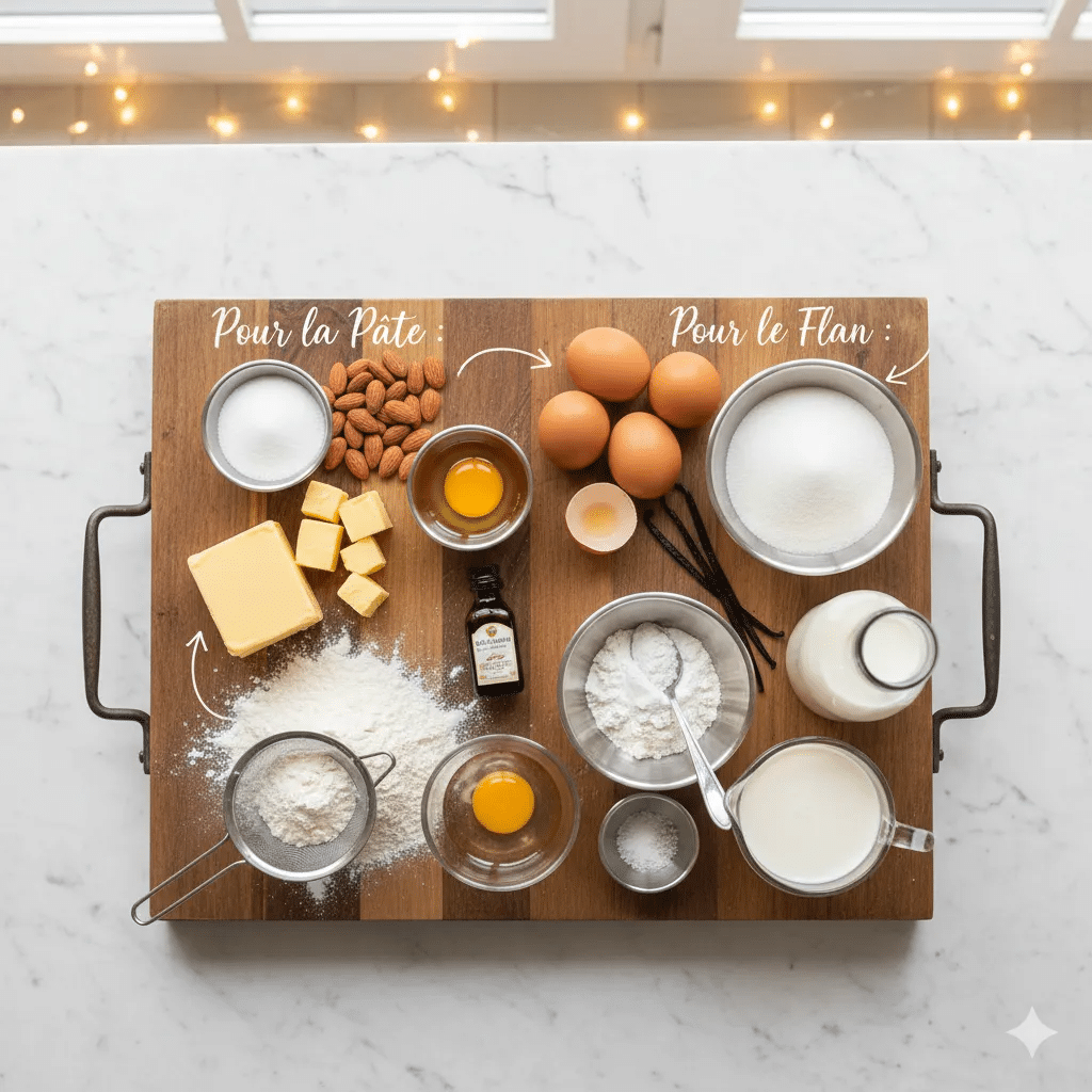 Voici la liste complète pour un flan de 25 cm (8 à 10 parts) :