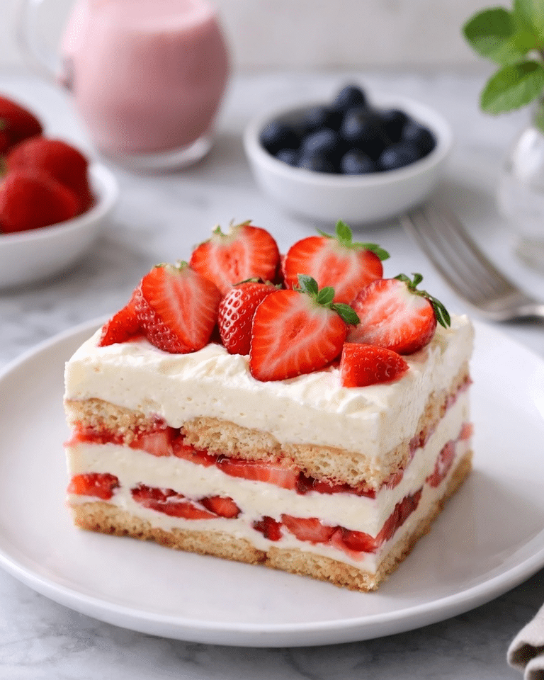 - Decorate with fresh strawberries and optional white chocolate shavings.